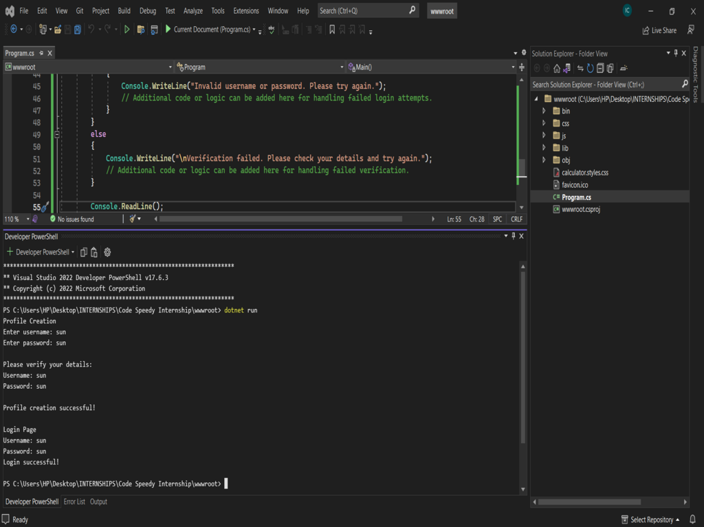 Console.WriteLine("\nProfile creation successful!");